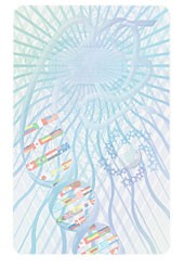 This feature provides a complex background image of artwork combining images of 2 and 3-dimensional flowing ribbons. Requires no special lights or readers to verify.