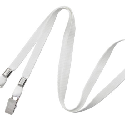White Open-Ended Mask Lanyard with Two Bulldog Clips 3/8″, 100 count