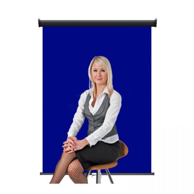 Heavy Duty 3′ x 4′ Royal Blue Retractable Wall & Ceiling Photo ID Backdrop, Black Casing