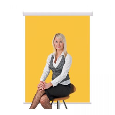 Heavy Duty 3′ x 4′ Yellow Retractable Wall & Ceiling Photo ID Backdrop, Black Casing