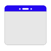 Clear vinyl, Royal Blue bar badge holders Horizontal orientation Name tag size Maximum card dimensions: 3 1/4” W x 2 1/16” H (83mm x 53mm) Slot and chain holes Top load 100 pack