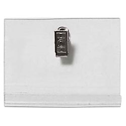 Clear acetate 10 mil ID badge holder with nickel plated steel embossed “U” clip,