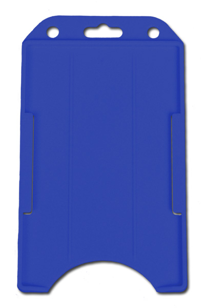 These vertical rigid plastic card holders are designed with four rails to keep a single ID card securely in place.
