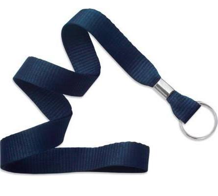 Navy Blue 5/8″ flat weave non-breakaway ID neck lanyard with NPS Split Ring, 36″