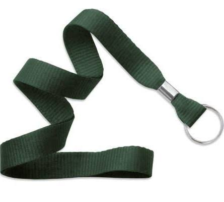 Forest Green 5/8″ flat weave non-breakaway ID neck lanyard with NPS Split Ring, 36″