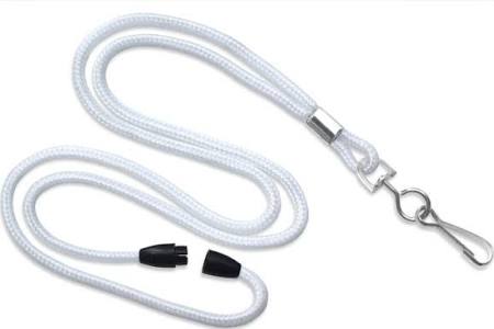 2137-2008 White Round Braid ID Neck Lanyard w Swivel Hook 100 count