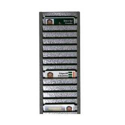 All metal ID badge rack. The width of the card slots is 3 3/4″ (95mm) and suggested card height is 2 1/8″ (54mm).