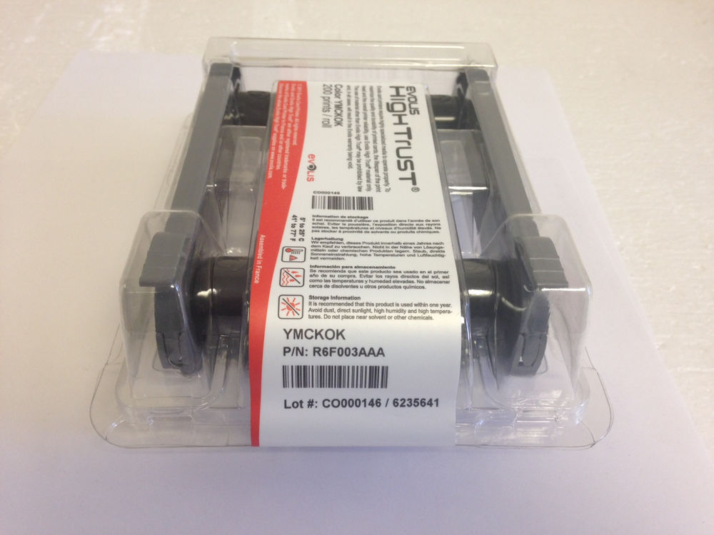 Evolis 6-Panel Full Color YMCKOK ID Card Printer Ribbon, 200 prints per roll for use with legacy Primacy 1 dual sided printer .