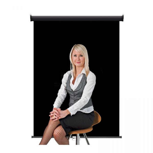 Retractable Photo Backdrop – Wall or Ceiling mounted, Black Casing, 36″ x 48″ – BLACK (DL16351)