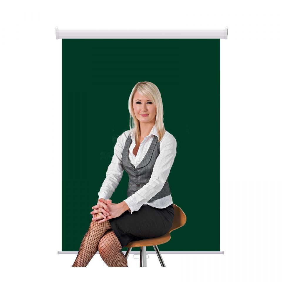 Retractable photo ID backdrop. Ideal for passport photos and photo ID card applications in space restricted settings. Can be hung or mounted to your wall or ceiling with built-in mounting brackets. Screws and bolts not included. Pull-down clutch mechanism locks retractable backdrop screen at any length. Seamless fabric with Laminated back.